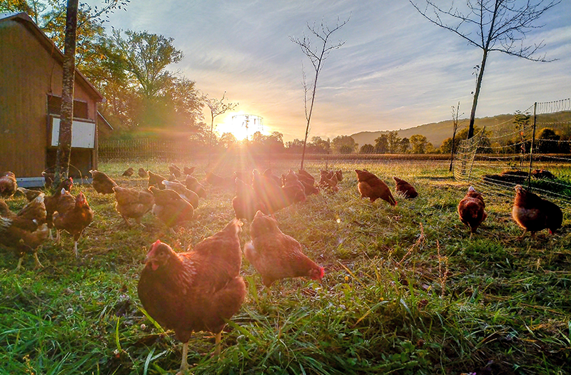Petite ferme avec 1 ha de vigne de table et deux petits poulaillers de pondeuses en agroforesterie, le tout labellisé bio.